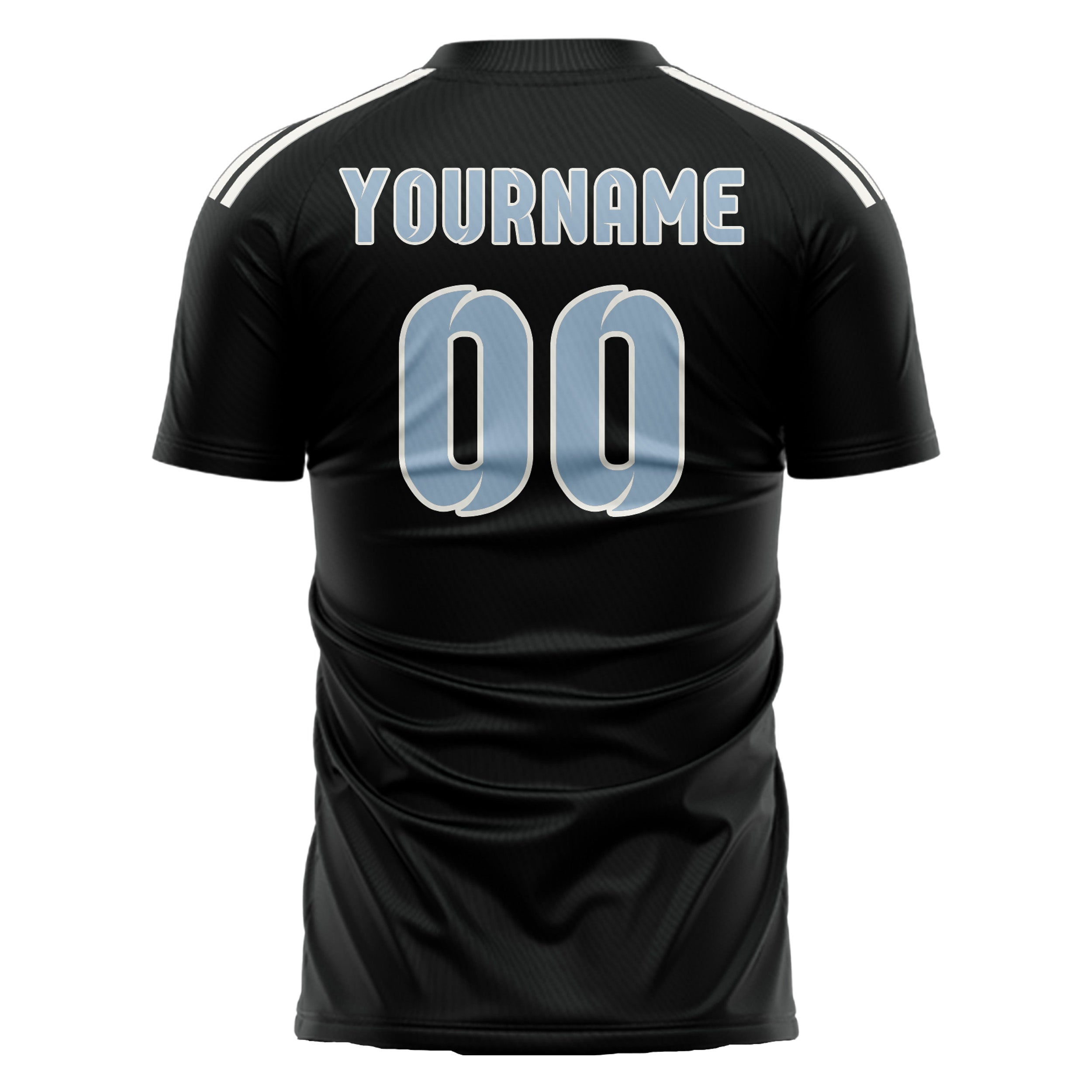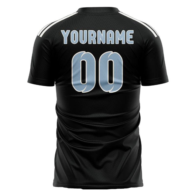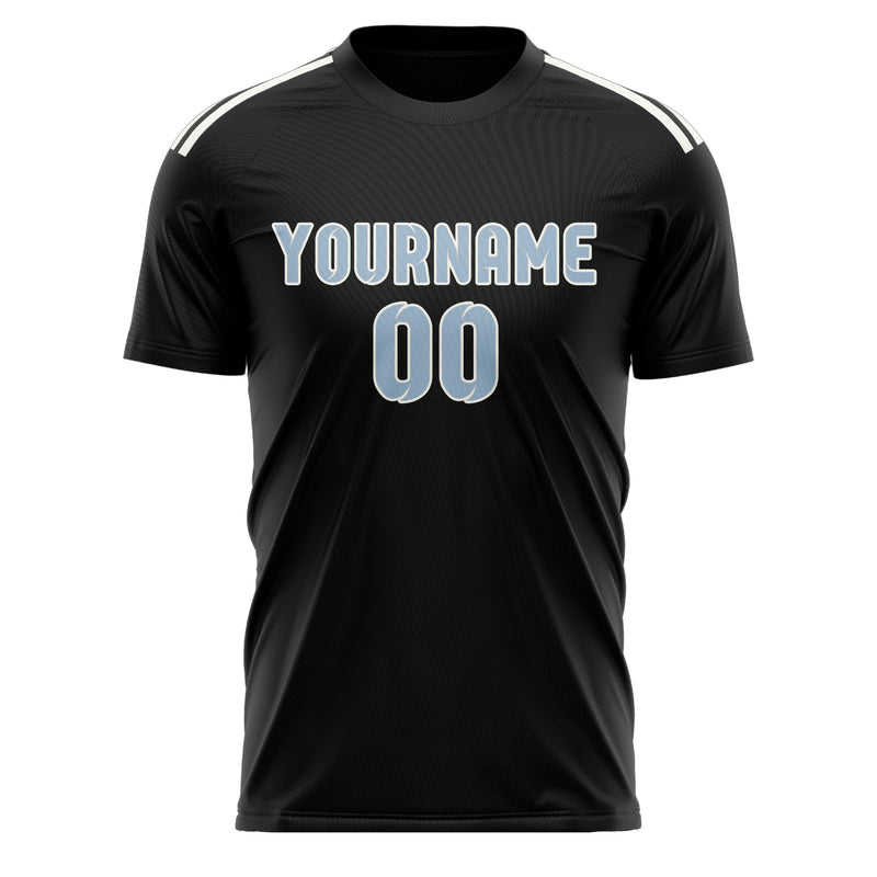 Custom Black Light Blue Soccer Jersey