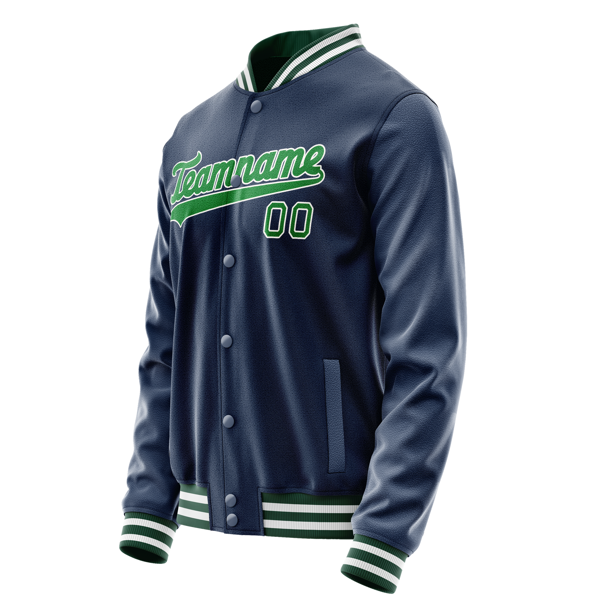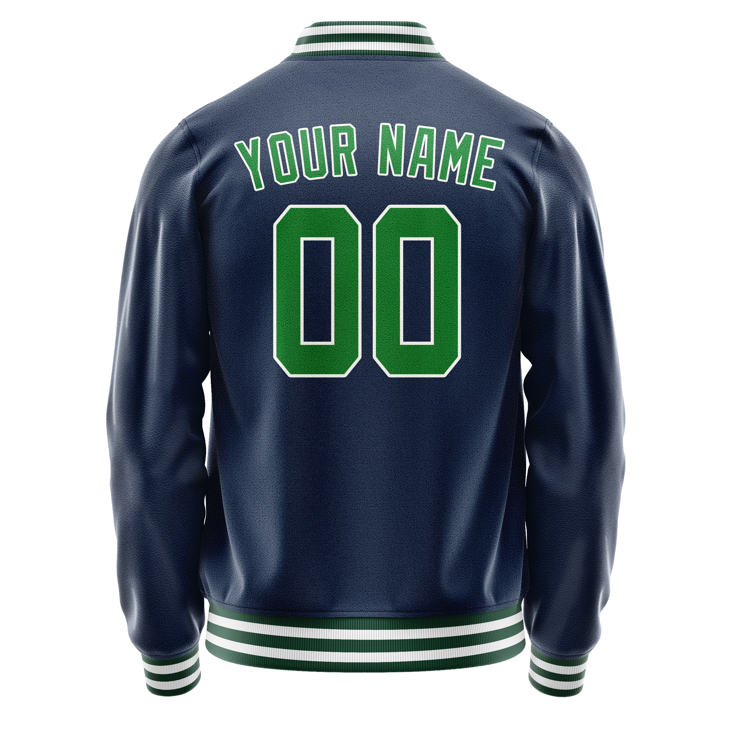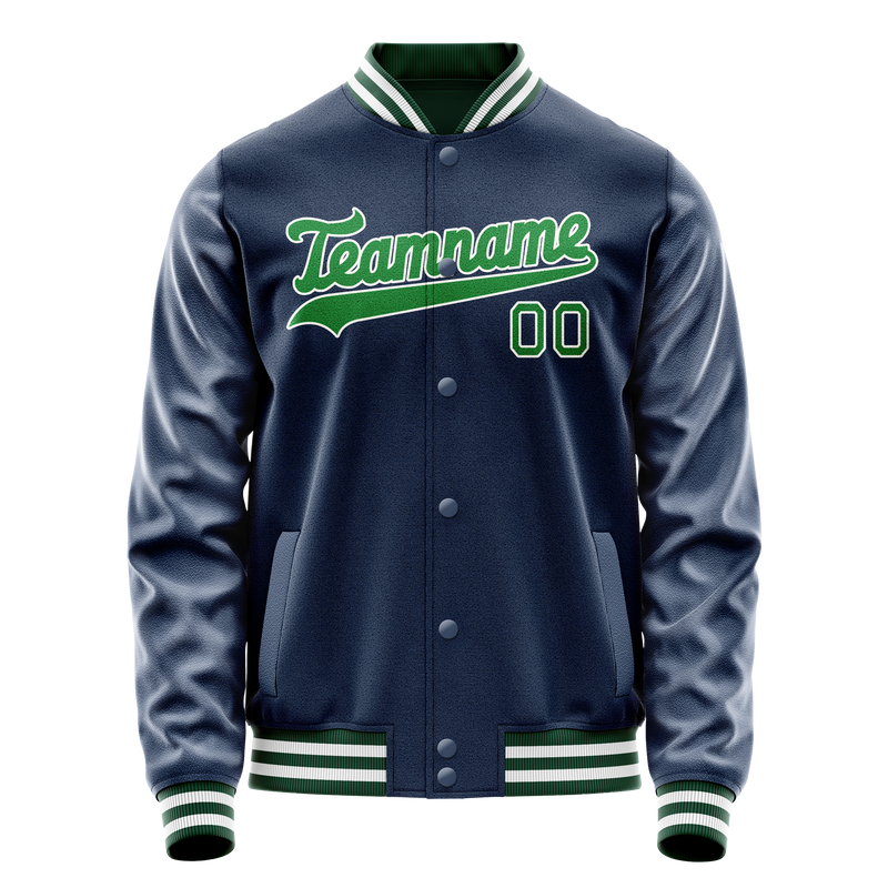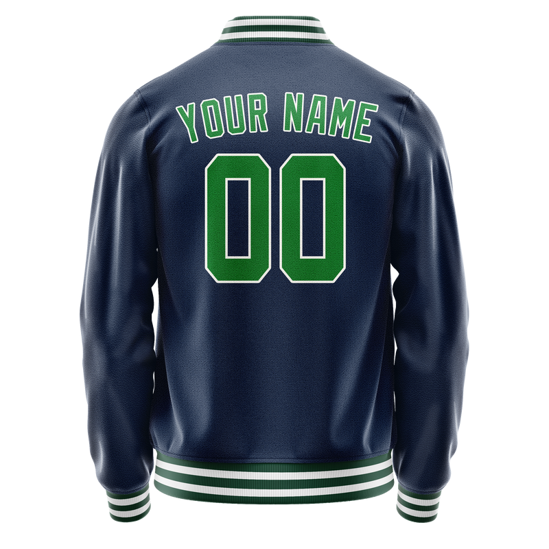 Custom Blue Neon-Green Solid Color Varsity Letterman Jacket