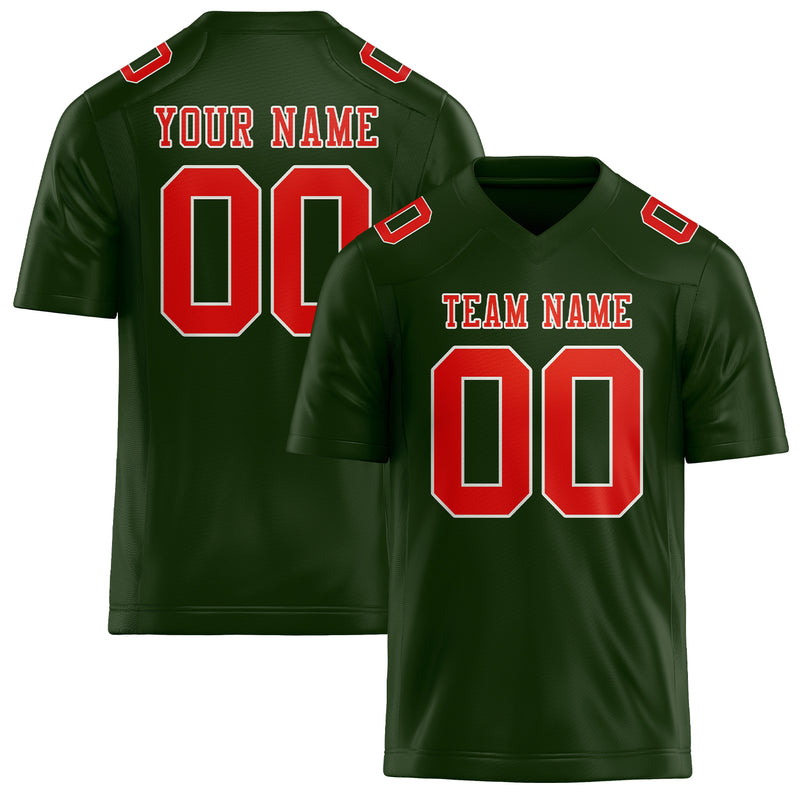 Custom Dark Green Orange Red Football Jersey