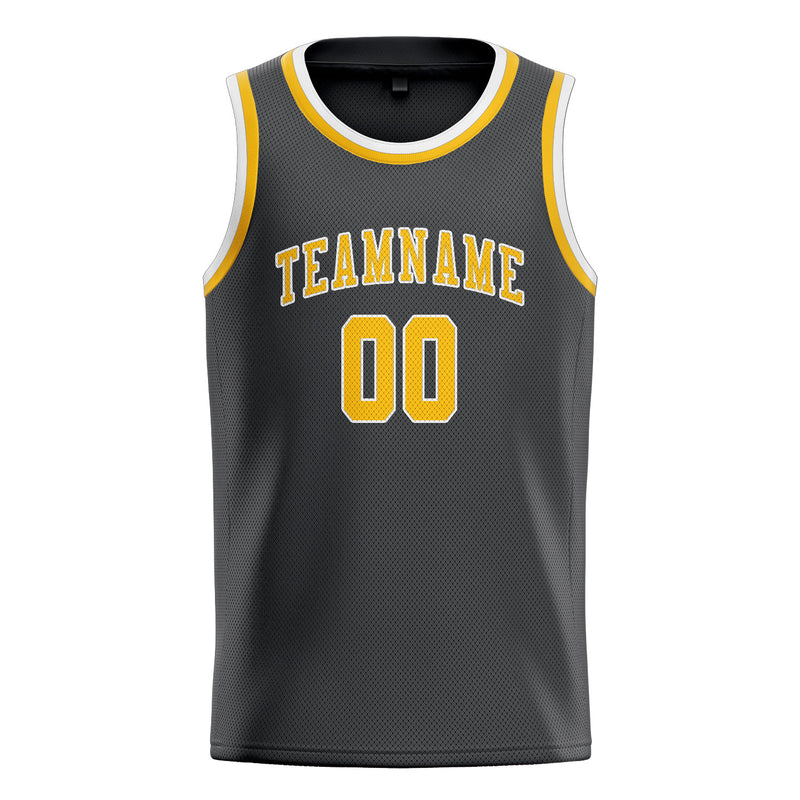 Custom Dark Grey Gold Basketball Jersey