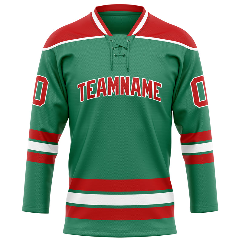 Custom Green Red Solid Colour Hockey Jersey