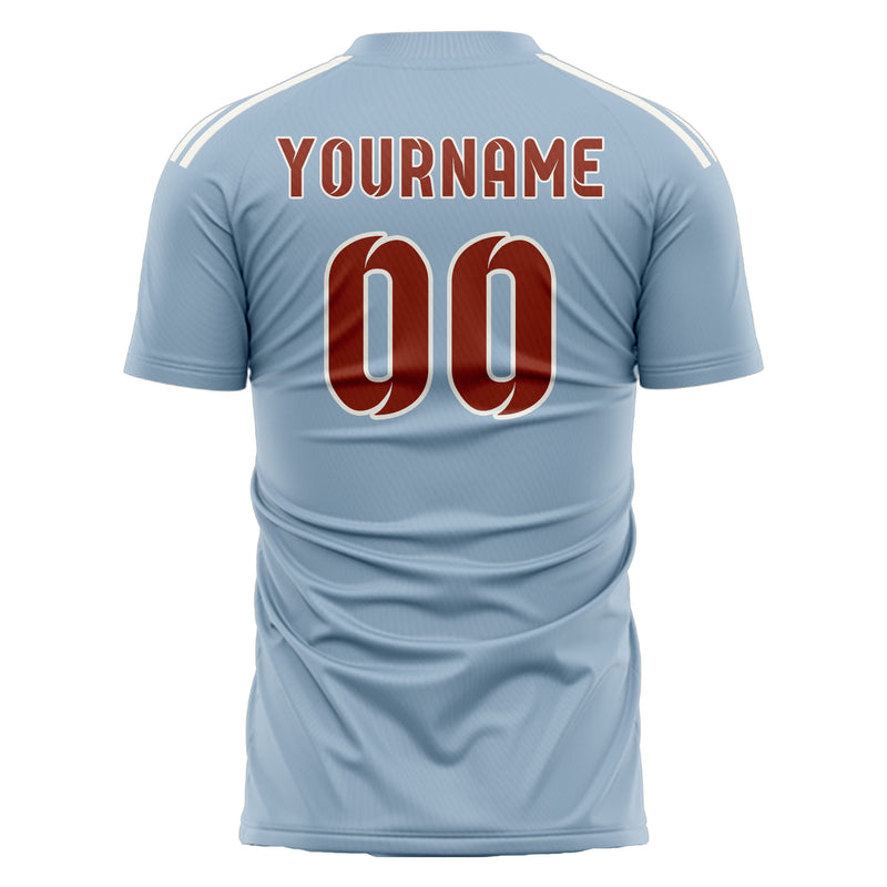 Custom Light Blue Coral Red Soccer Jersey