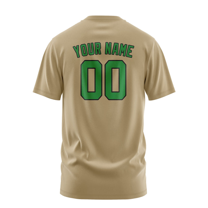 Custom Light Khaki Emerald Green T-Shirt