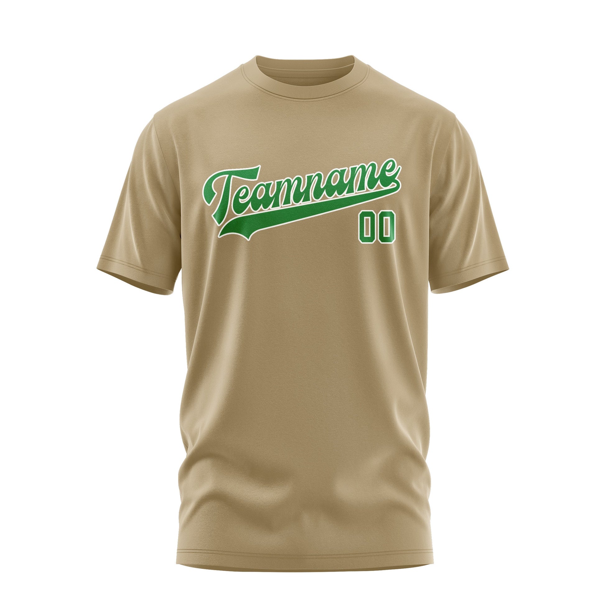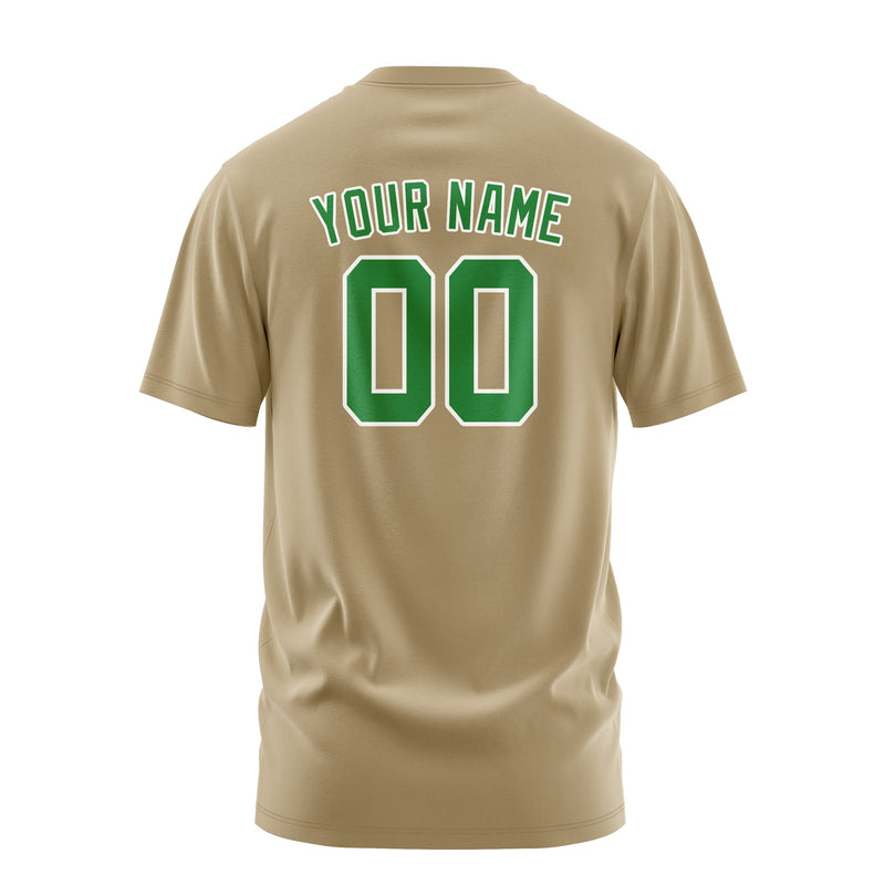 Custom Light Khaki Emerald Green T-Shirt