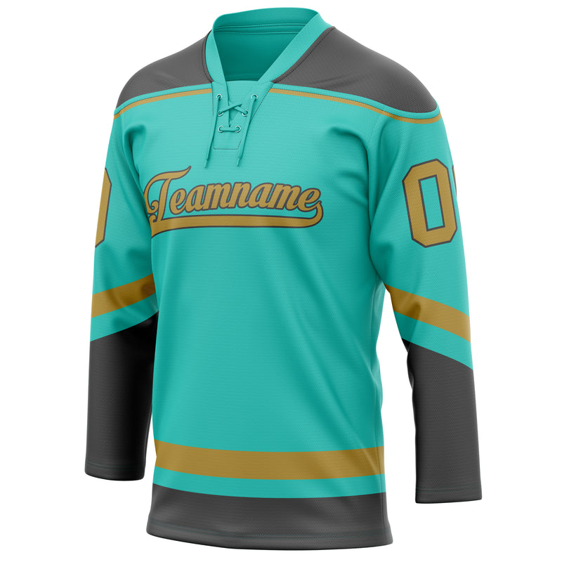 Maillot de hockey personnalisé bleu turquoise et or uni