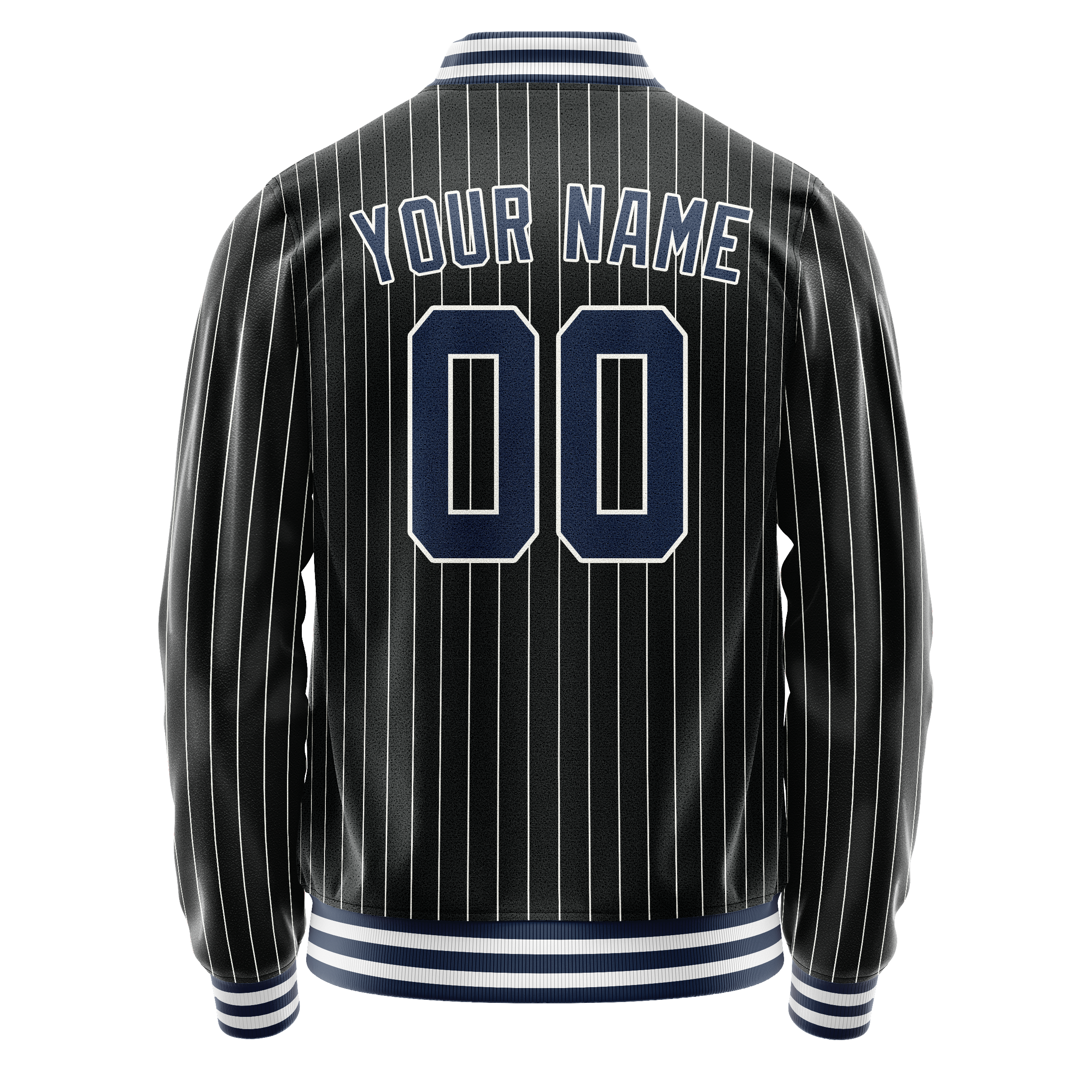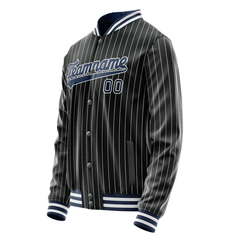 Veste universitaire personnalisée à fines rayures noires, bleues et blanches