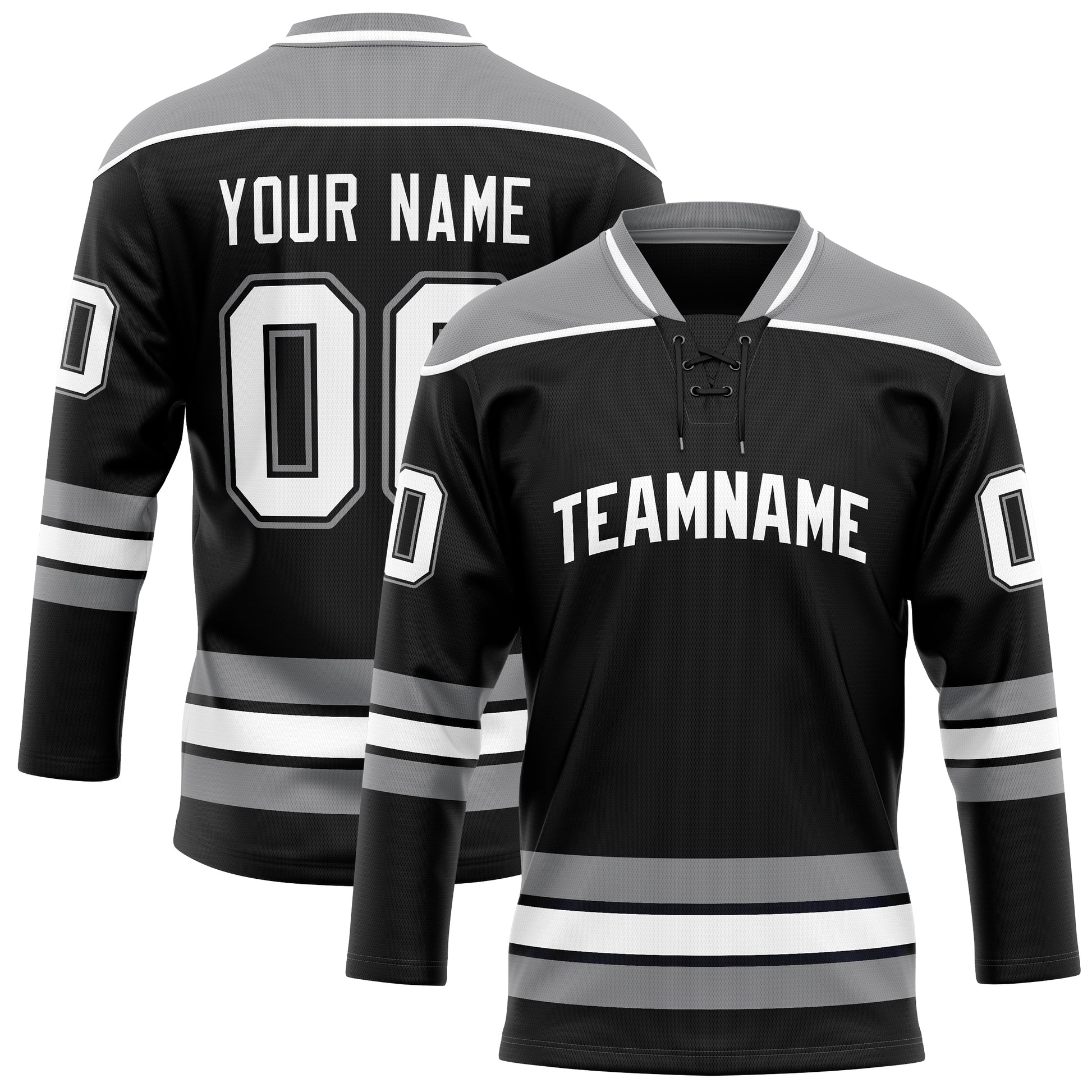 Maillot de hockey personnalisé noir et gris uni