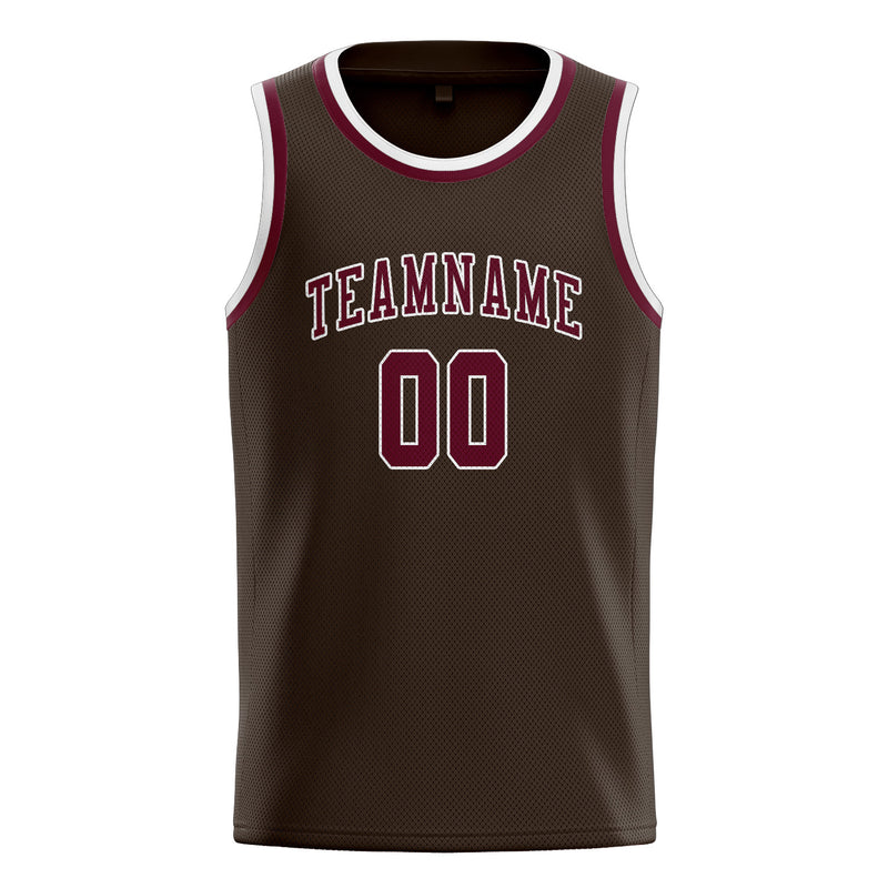 Maillot de basketball personnalisé marron, cramoisi et rouge