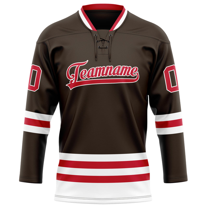Maillot de hockey personnalisé marron et rouge uni