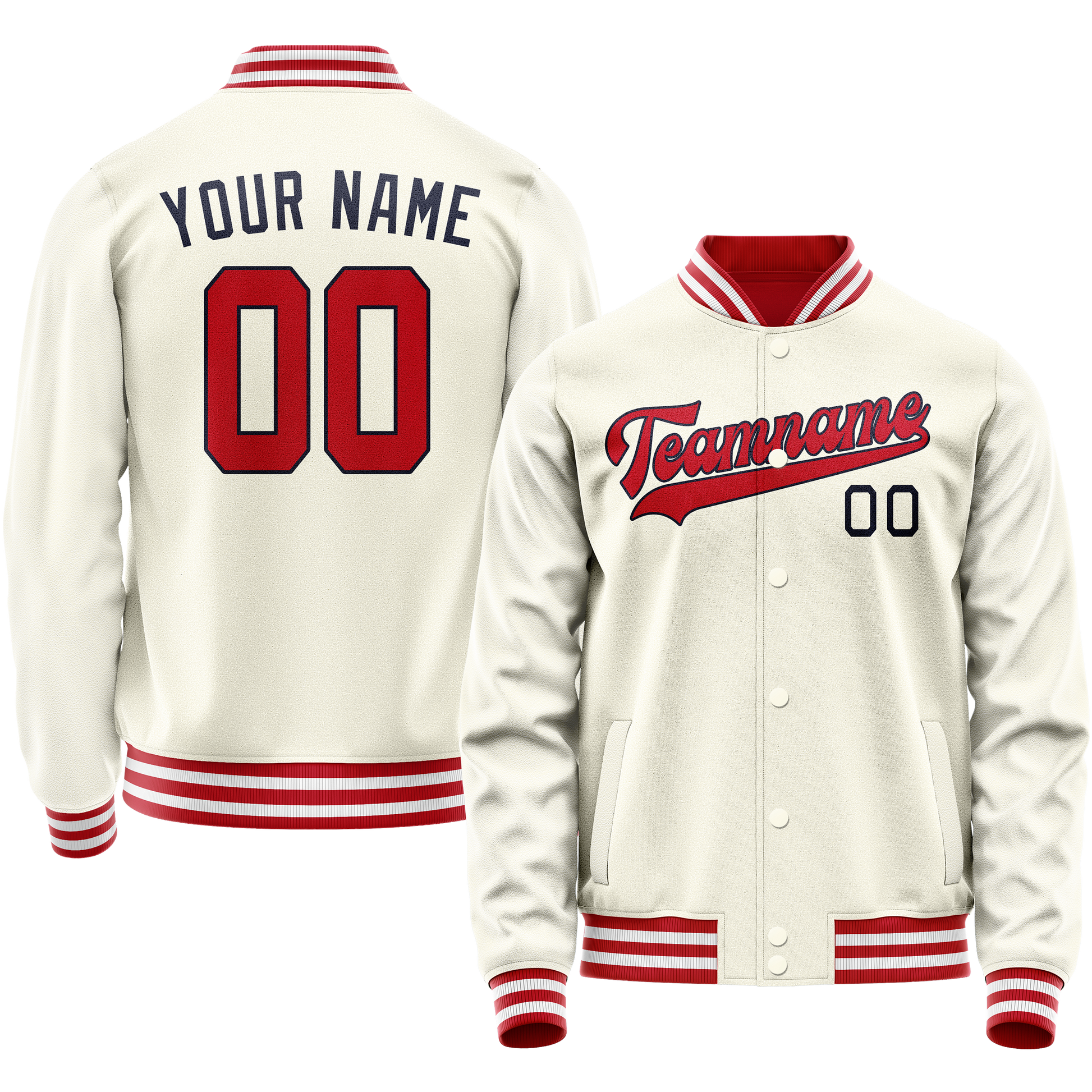 Veste universitaire personnalisée crème et rouge unie
