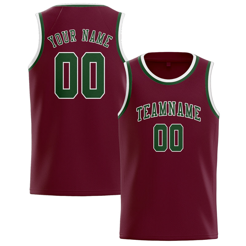 Maillot de basketball personnalisé rouge cramoisi et vert foncé