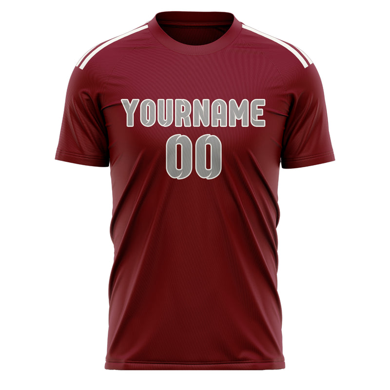 Maillot de football personnalisé rouge cramoisi et gris