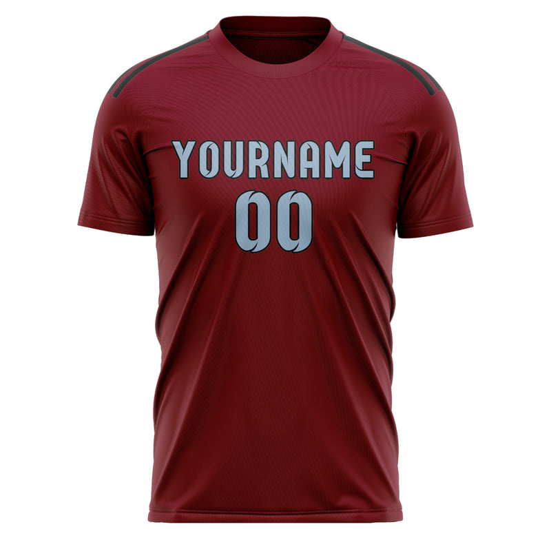 Maillot de football personnalisé rouge cramoisi et bleu clair