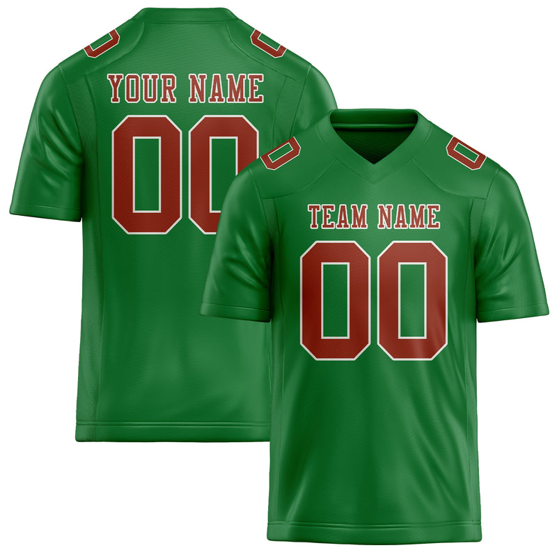 Maillot de football personnalisé vert émeraude et corail rouge