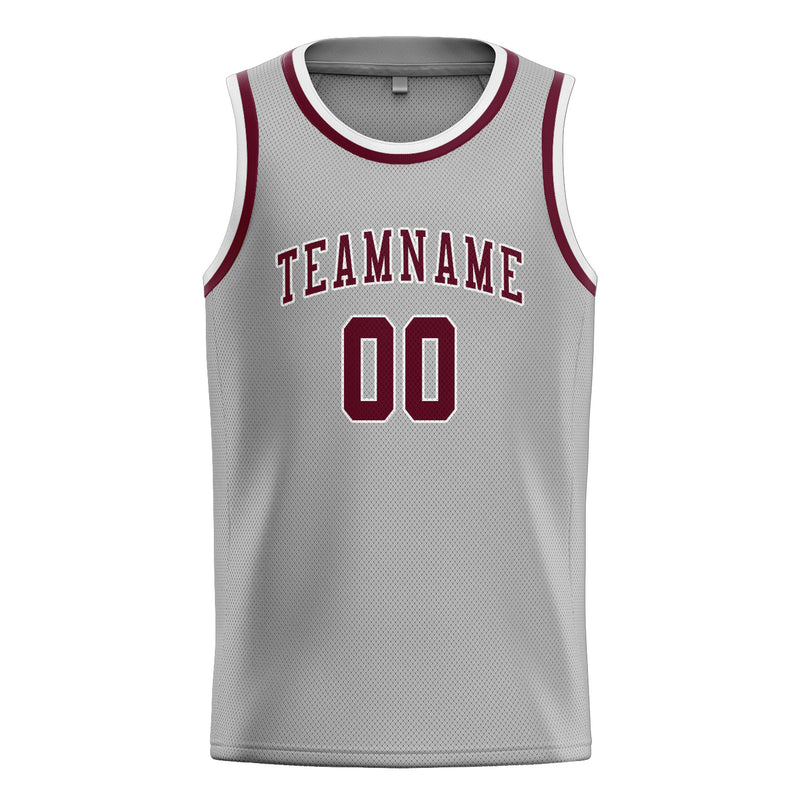 Maillot de basketball personnalisé gris cramoisi rouge
