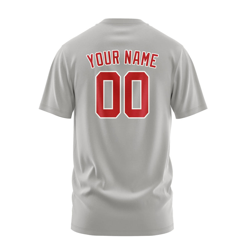 T-shirt gris et rouge personnalisé