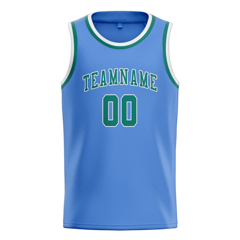 Maillot de basketball personnalisé bleu clair, bleu et vert