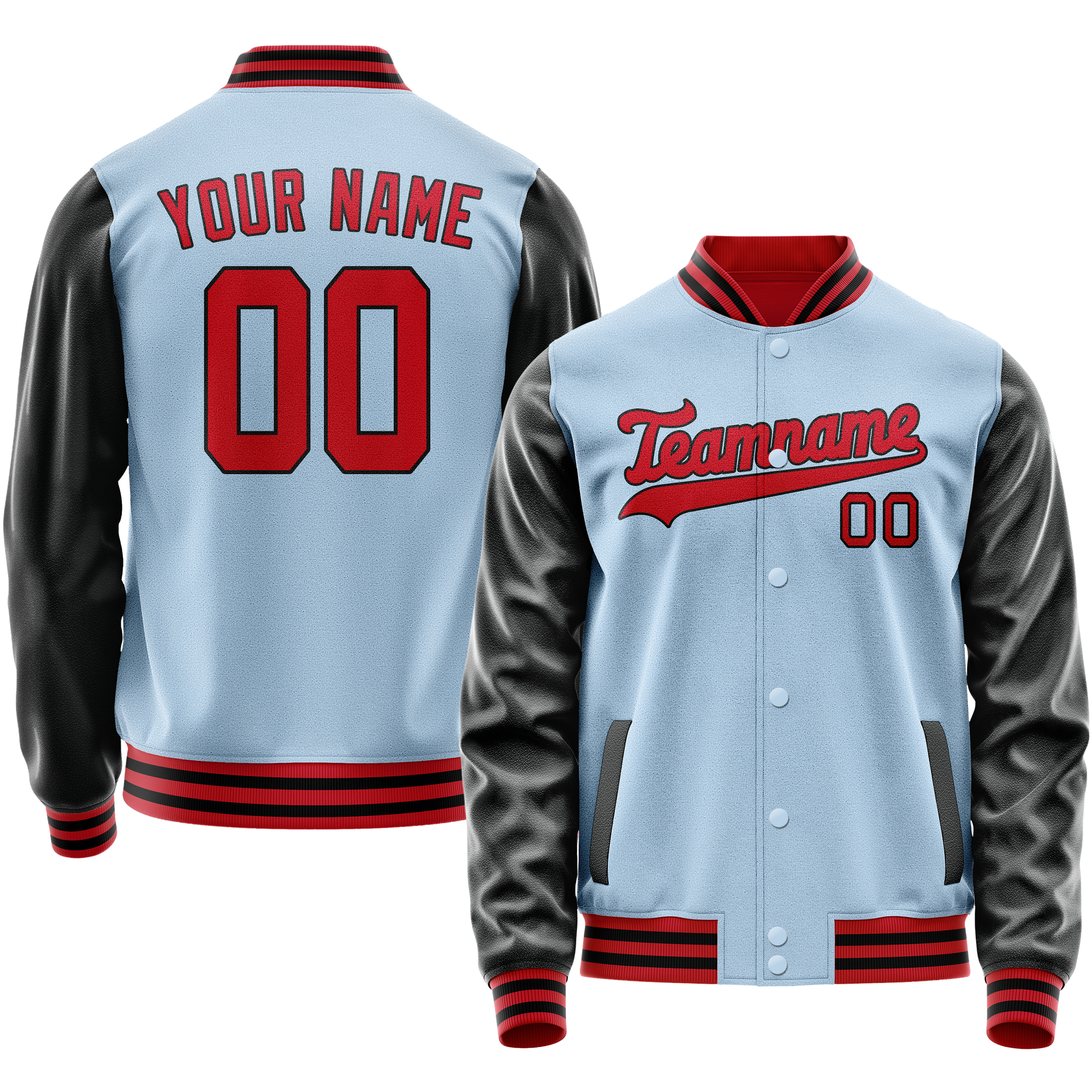Veste universitaire personnalisée bleu clair et cramoisi uni