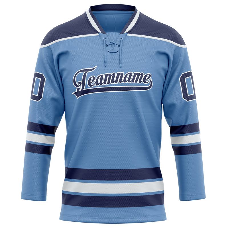Maillot de hockey personnalisé bleu clair et marine uni