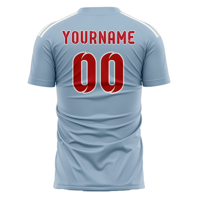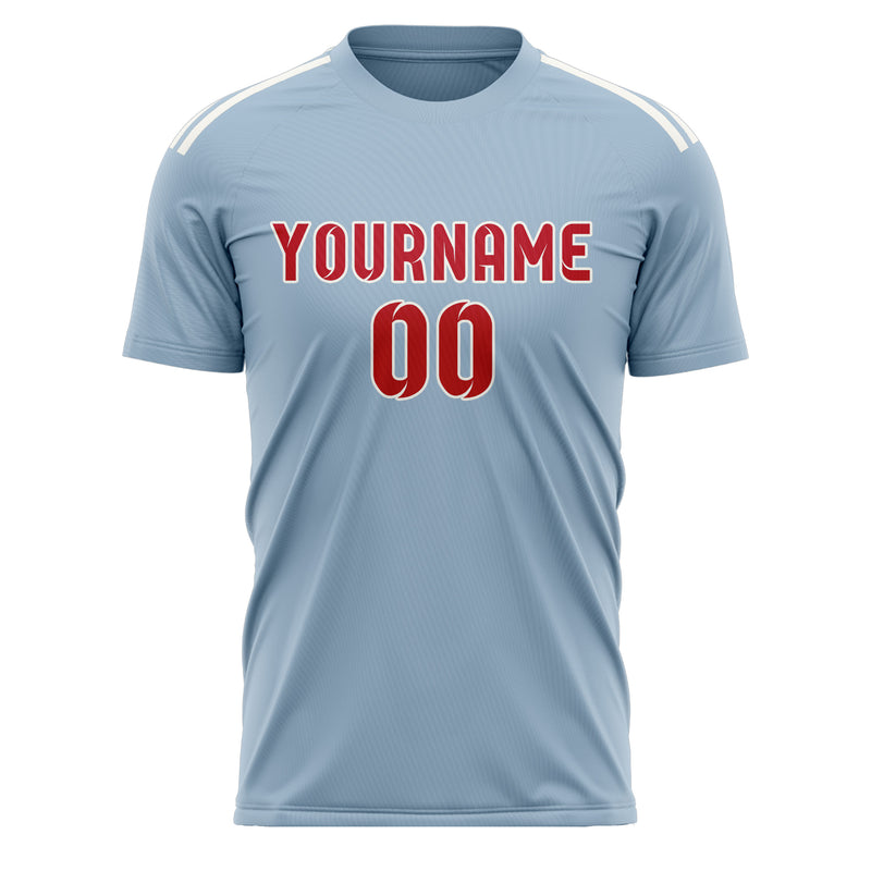 Maillot de football personnalisé bleu clair et rouge