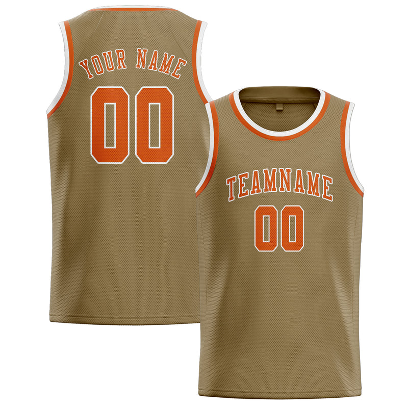Maillot de basketball personnalisé kaki clair orange