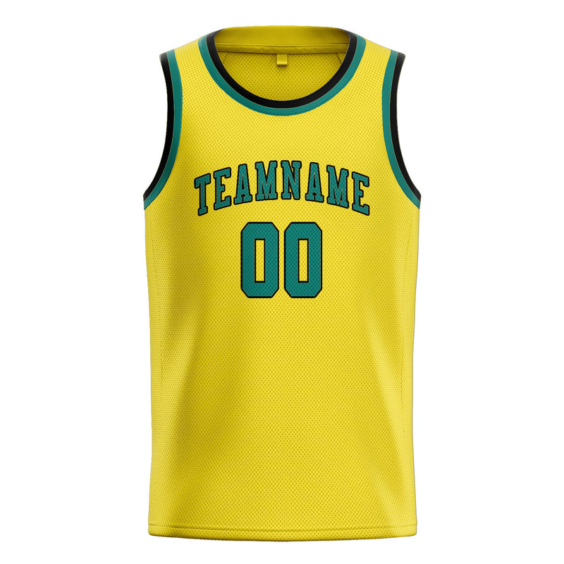 Maillot de basketball personnalisé jaune clair, bleu et vert