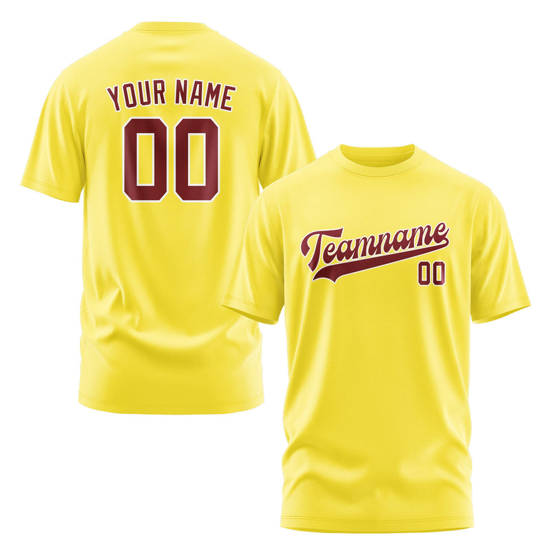 T-shirt personnalisé jaune clair et rouge cramoisi