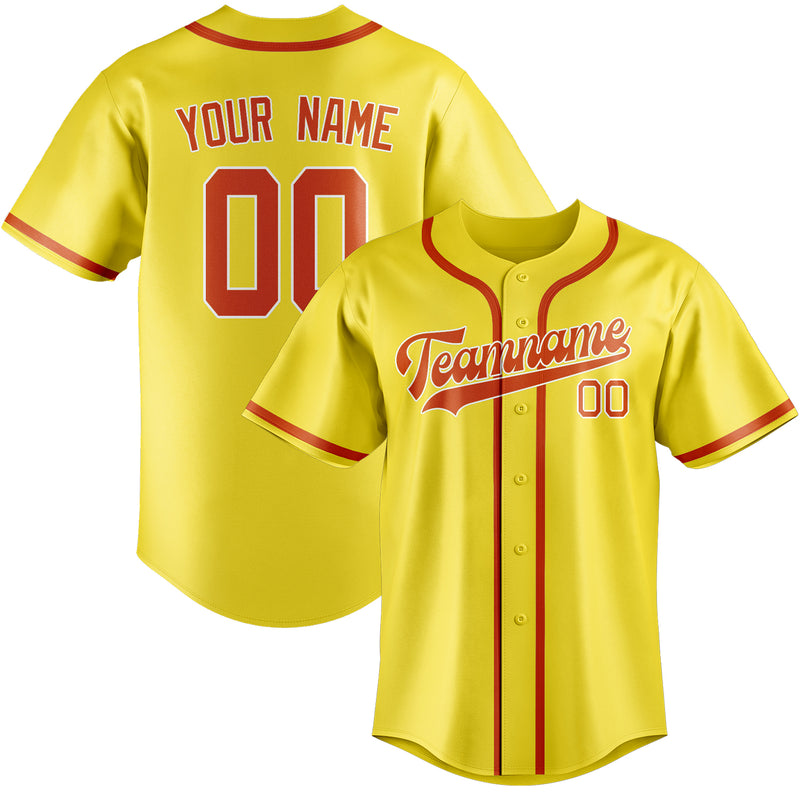 Maillot de baseball personnalisé jaune clair, orange et rouge