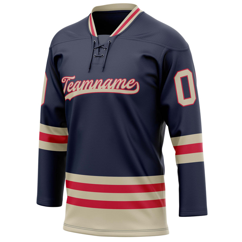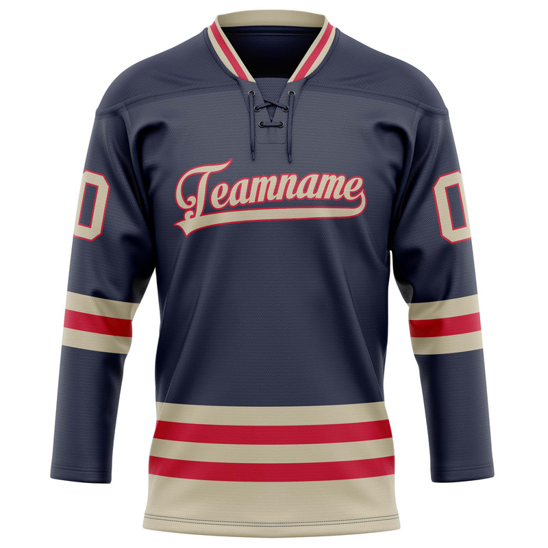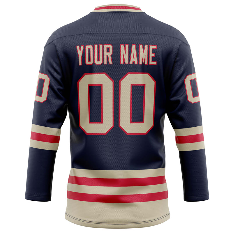 Maillot de hockey personnalisé bleu marine et crème uni