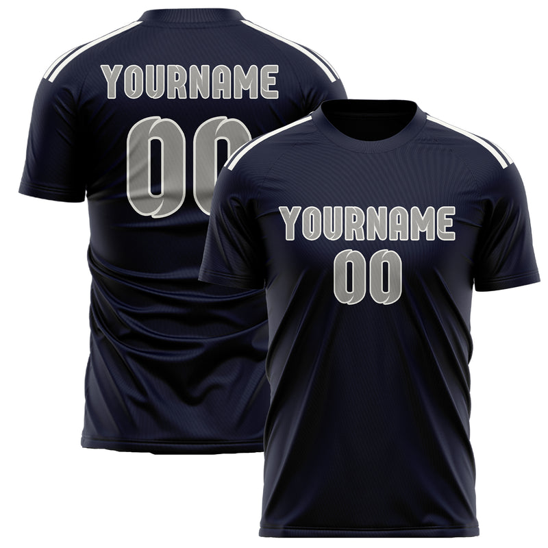 Maillot de football personnalisé bleu marine et gris
