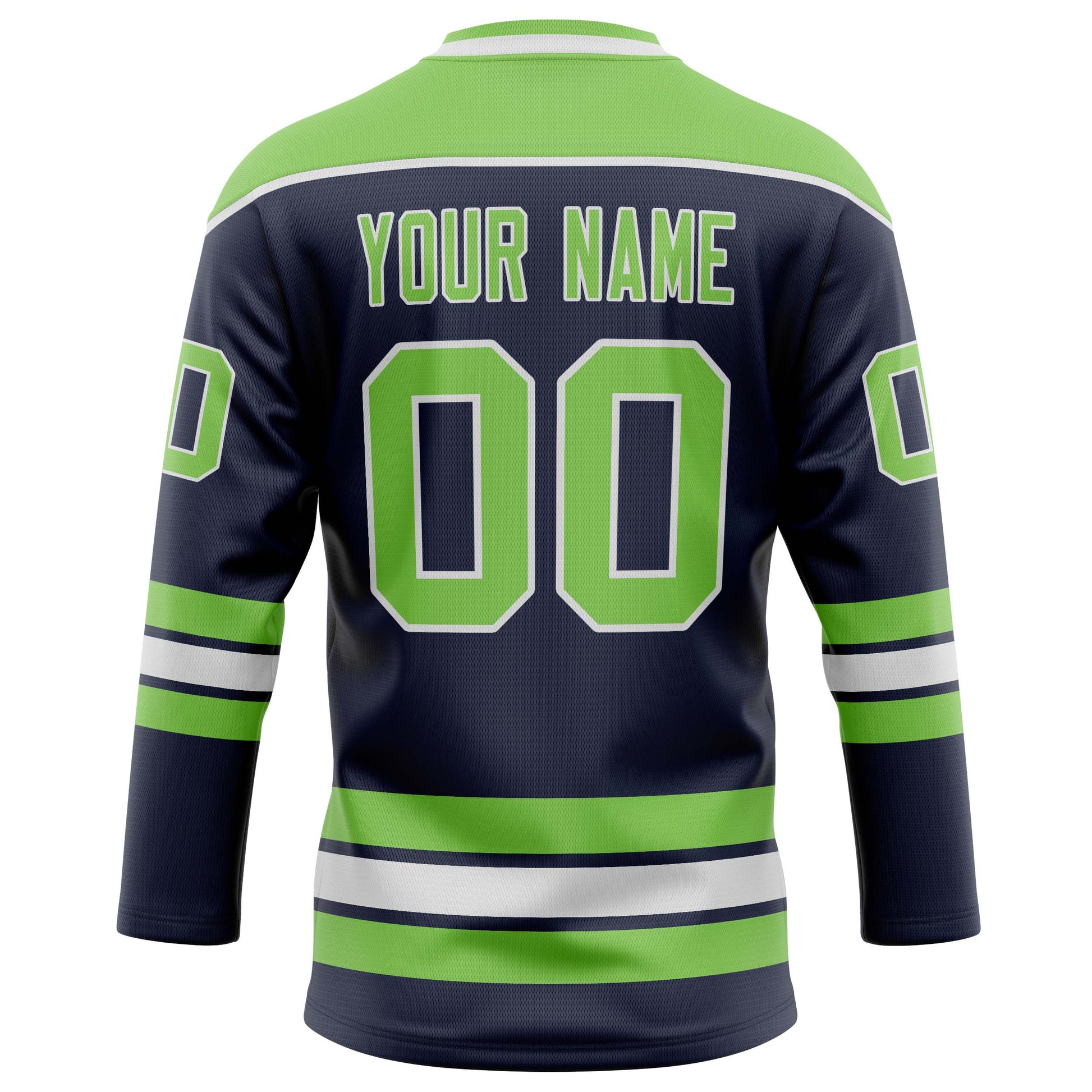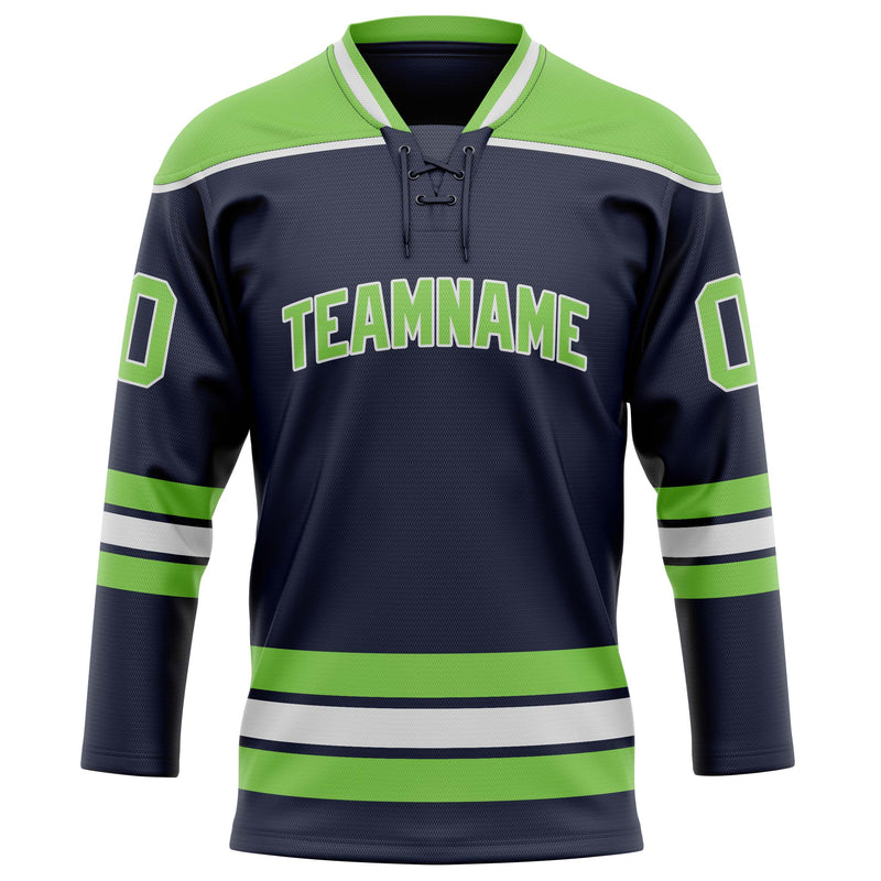 Maillot de hockey personnalisé bleu marine et vert fluo uni