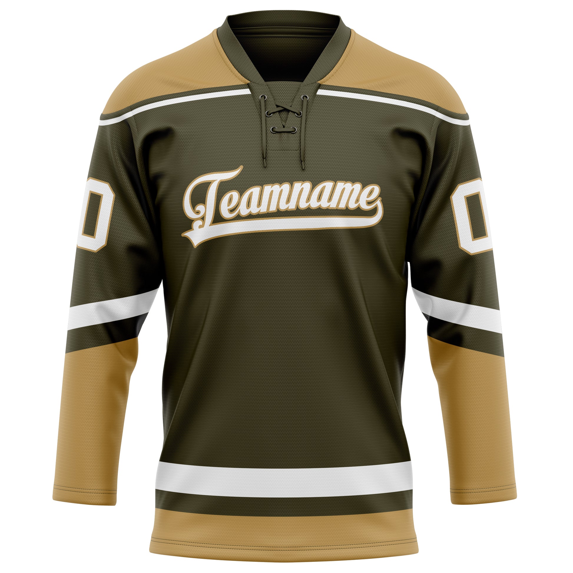 Maillot de hockey personnalisé vert olive et or uni