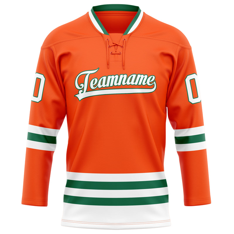 Maillot de hockey personnalisé orange et vert Kelly uni