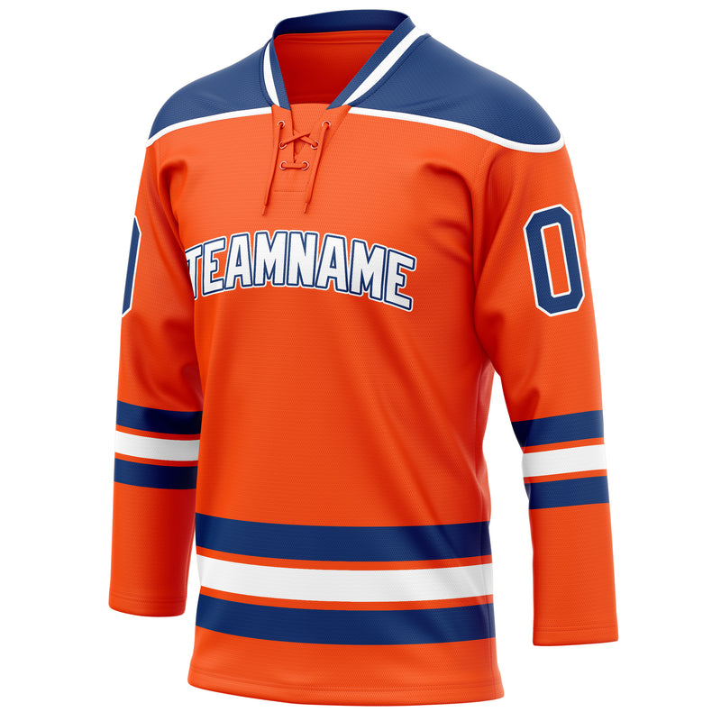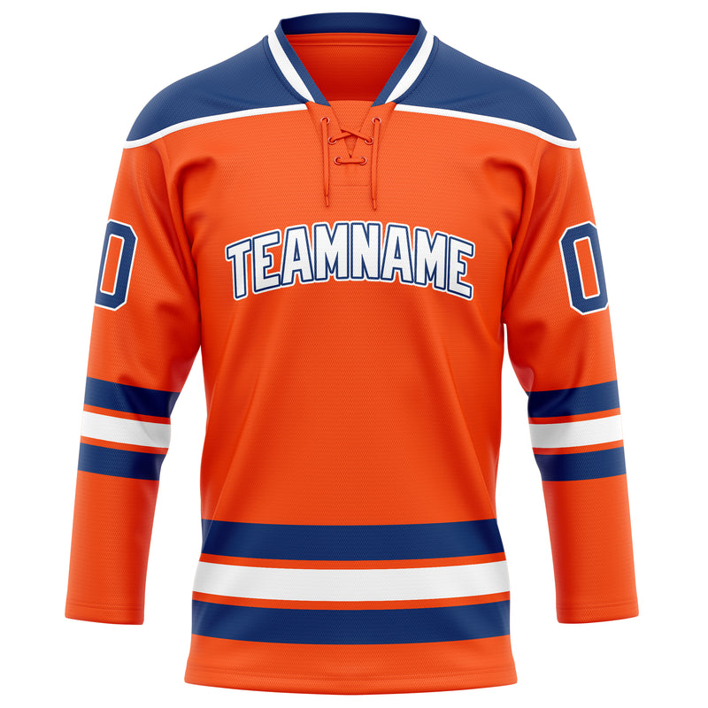 Maillot de hockey personnalisé orange et marine uni