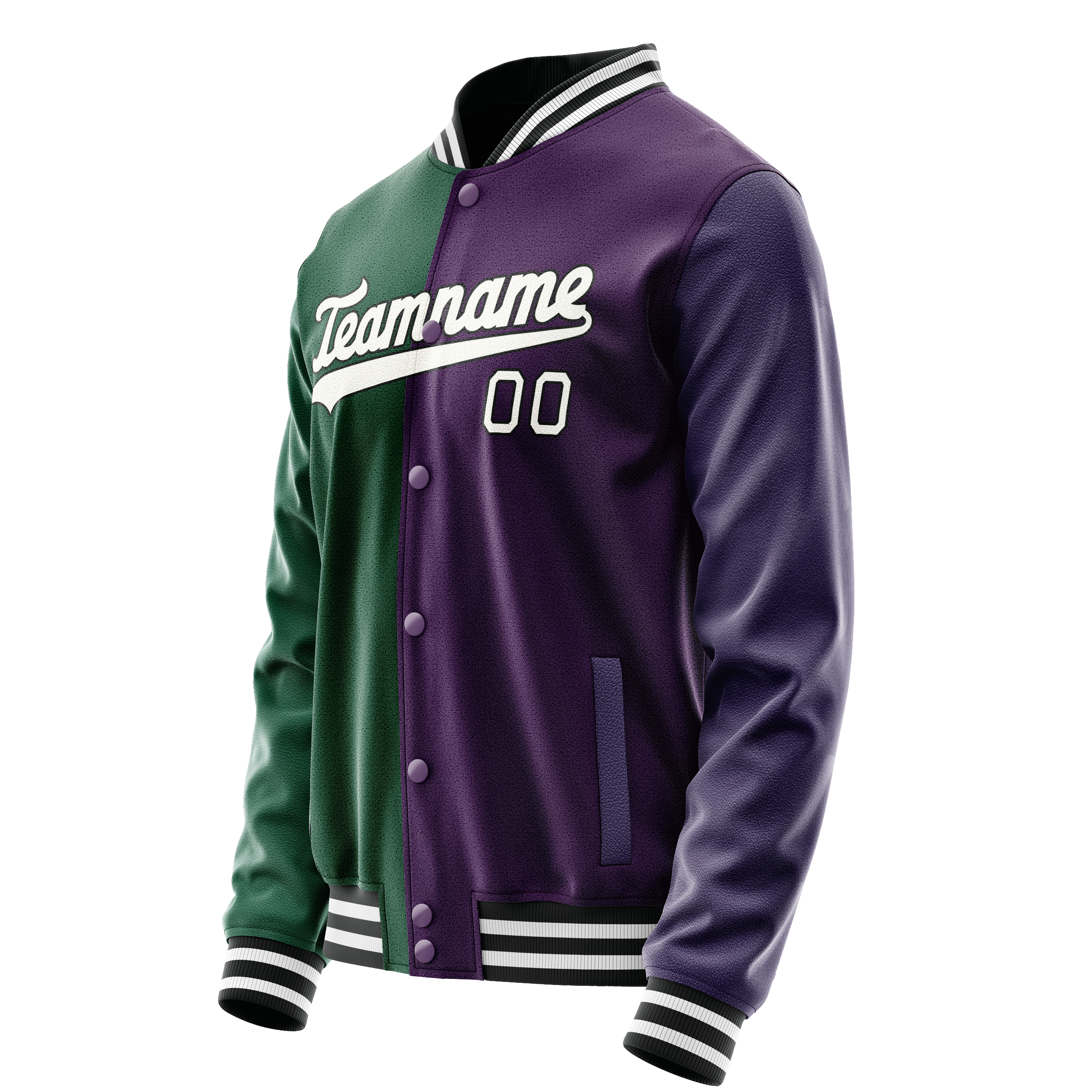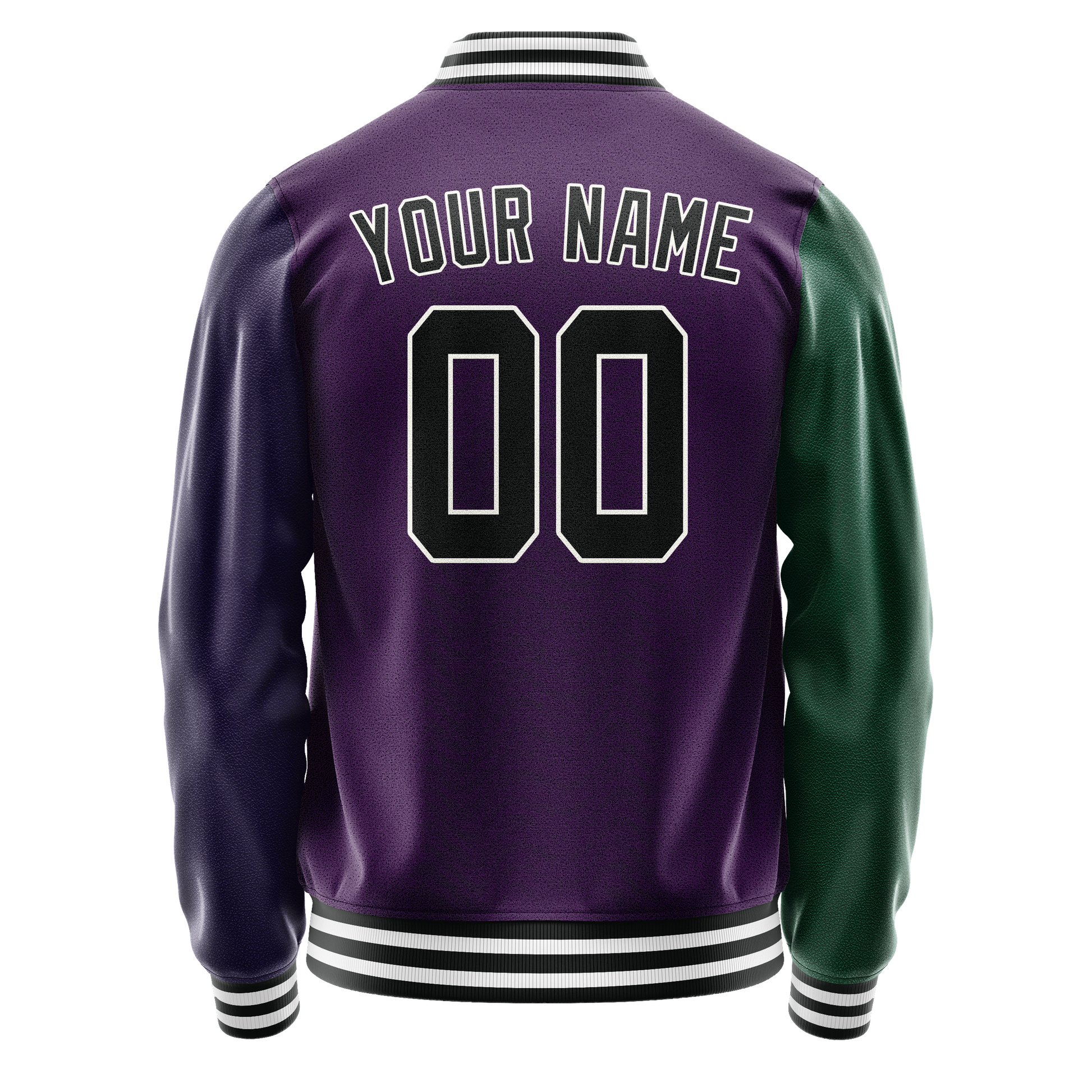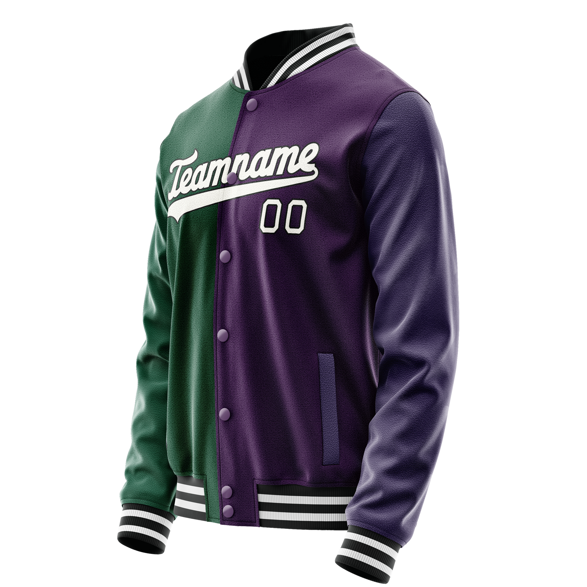 Veste universitaire personnalisée violette et verte bicolore