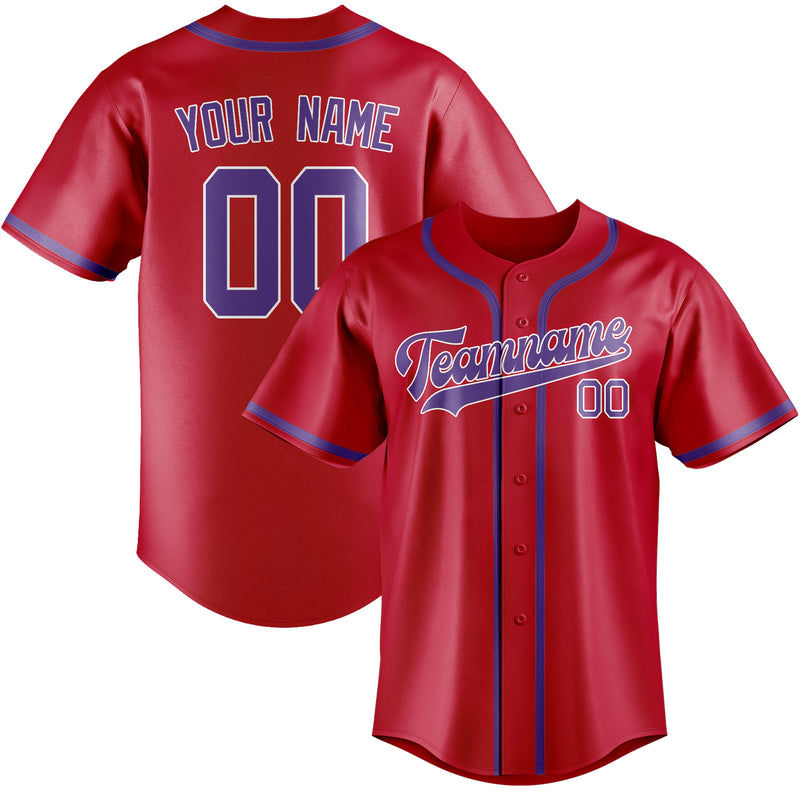 Maillot de baseball personnalisé rouge clair et violet