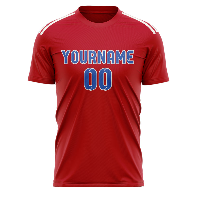 Maillot de football personnalisé rouge et bleu ciel