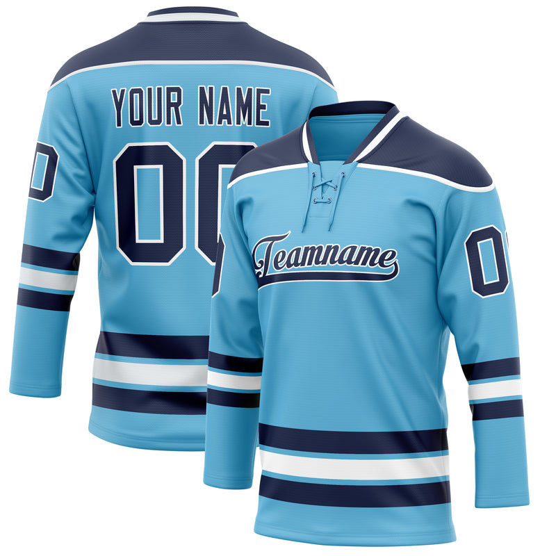 Maillot de hockey personnalisé bleu ciel et marine uni