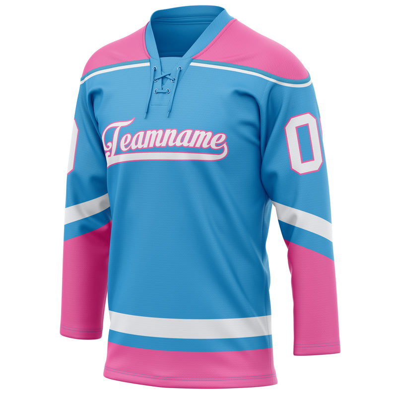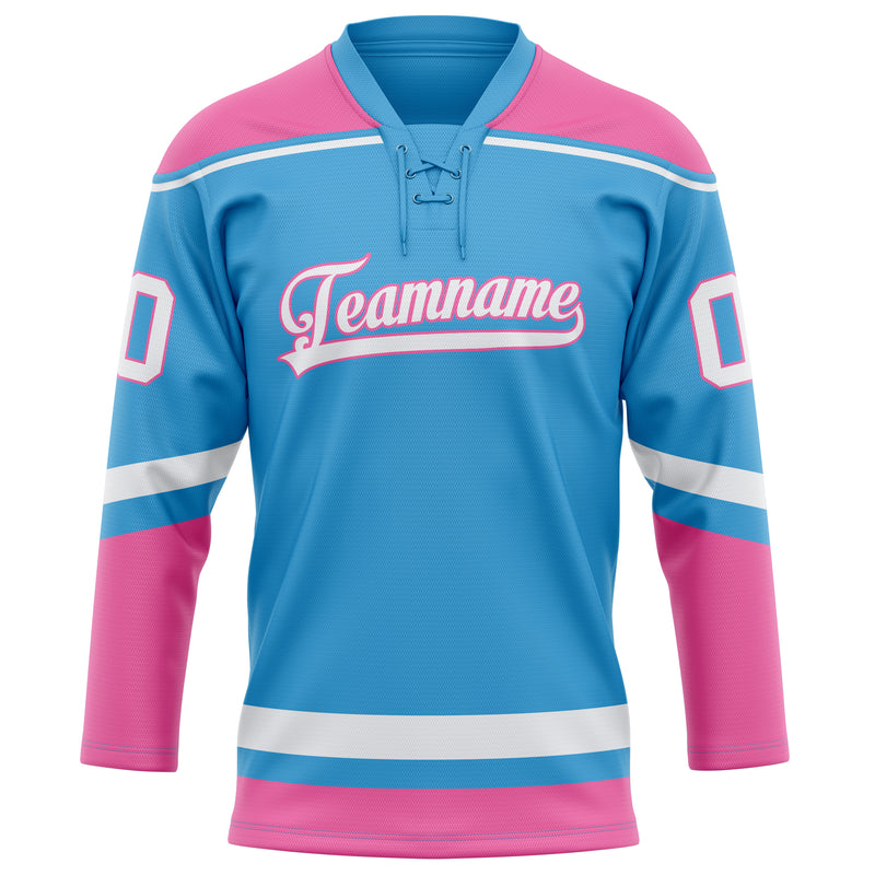 Maillot de hockey personnalisé bleu ciel et rose uni