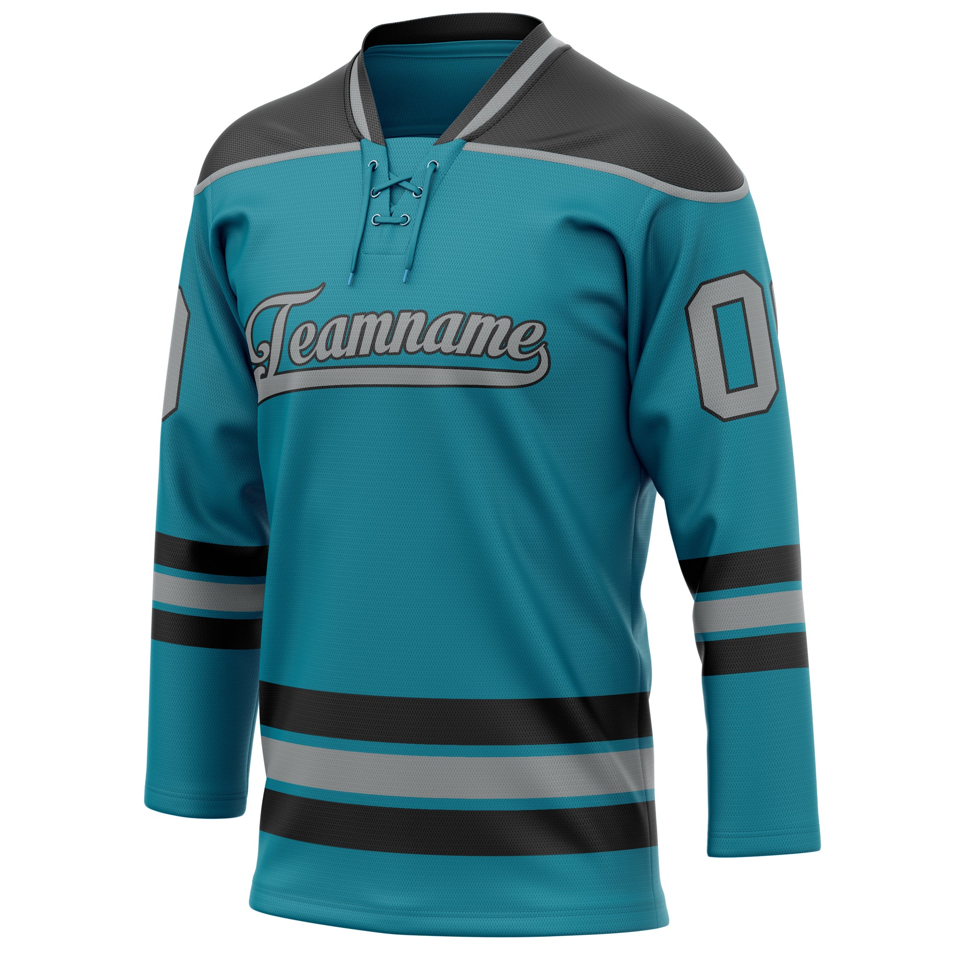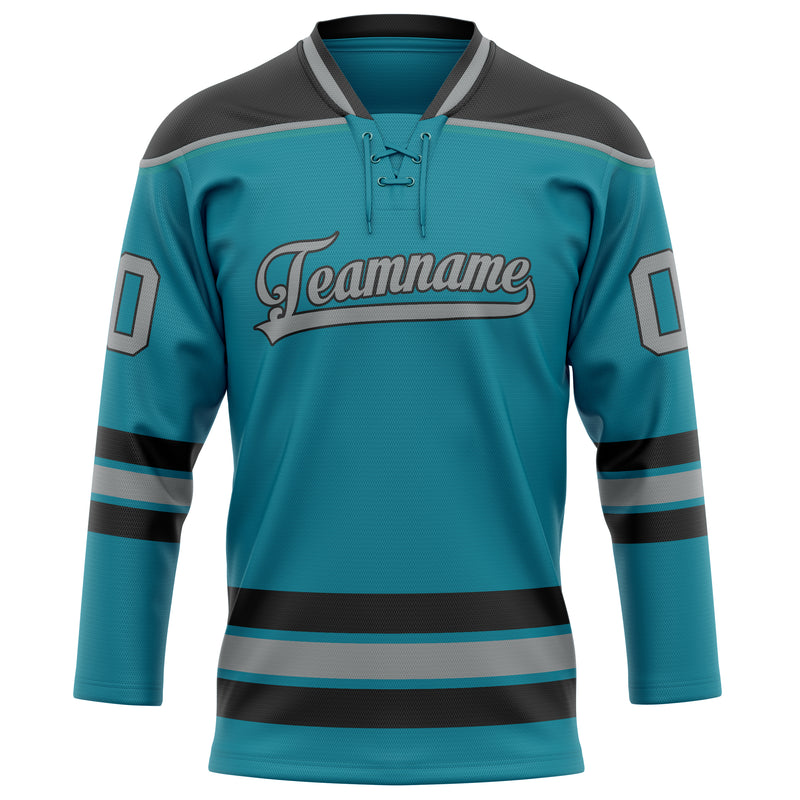 Maillot de hockey personnalisé bleu sarcelle et gris uni