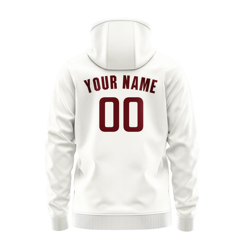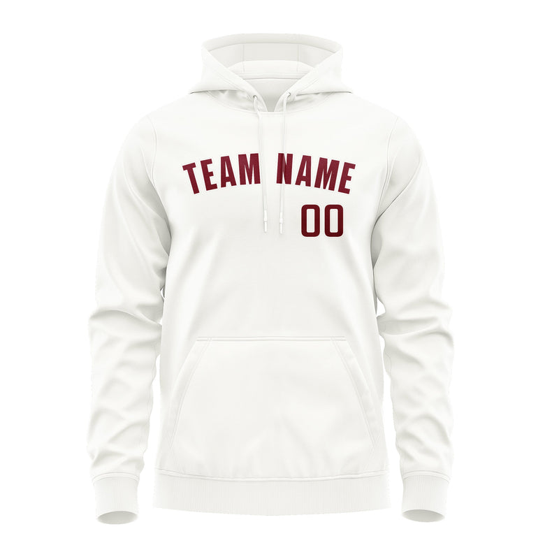 Sweat à capuche personnalisé blanc et rouge cramoisi