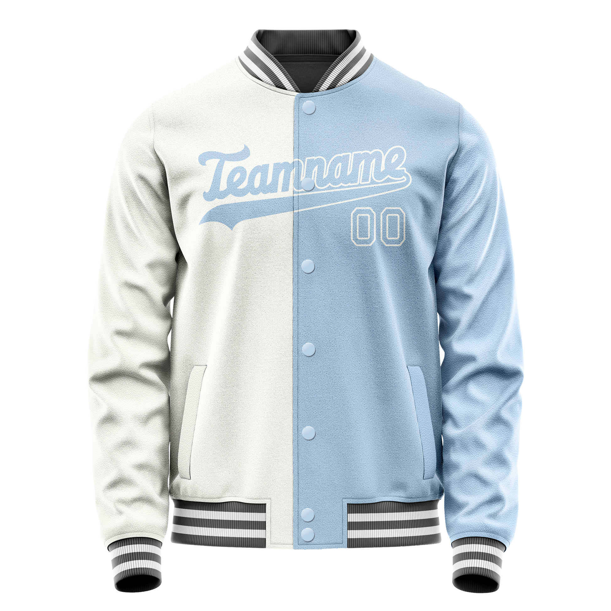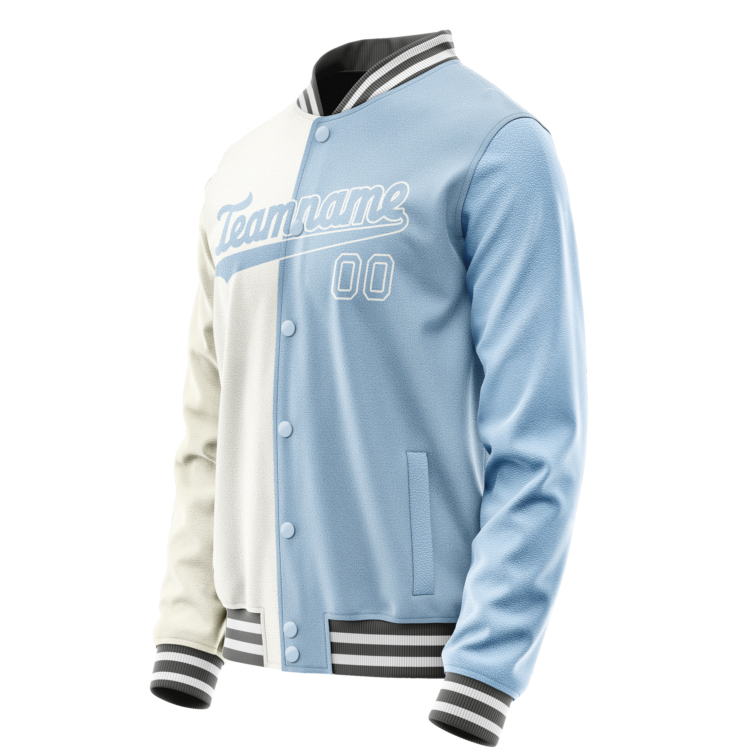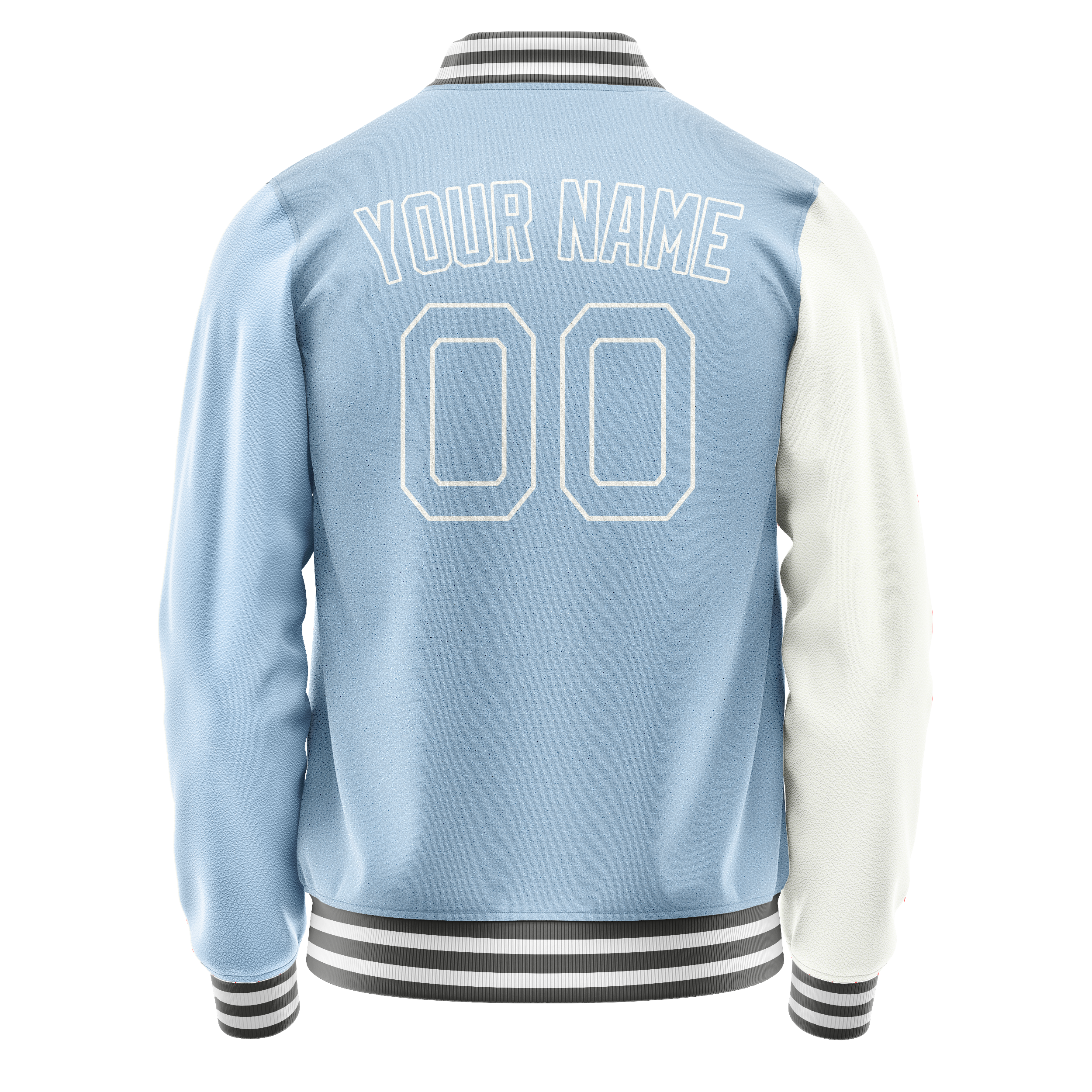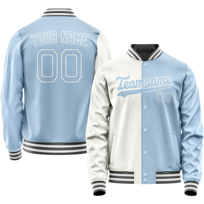 Veste universitaire personnalisée blanche et bleu clair fendue