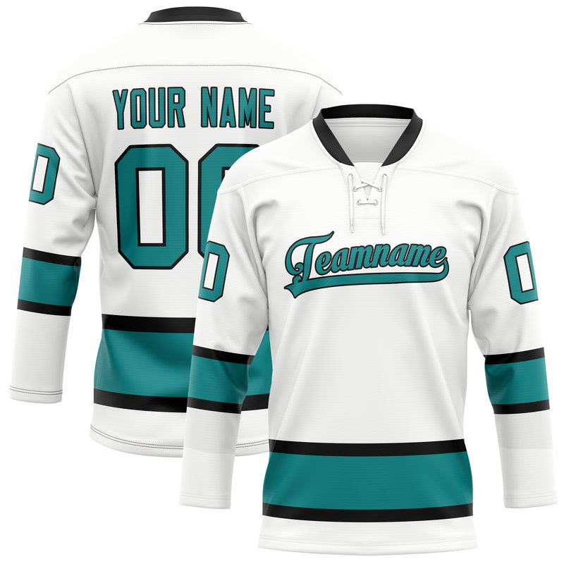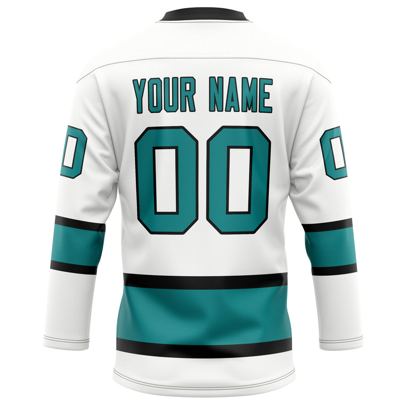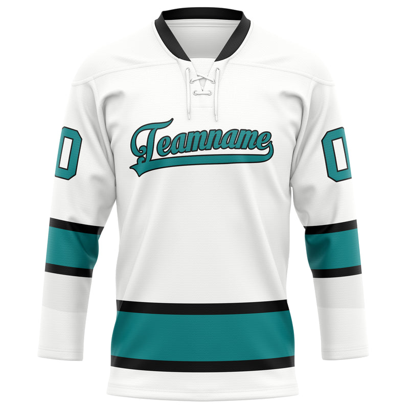 Maillot de hockey personnalisé blanc et turquoise uni
